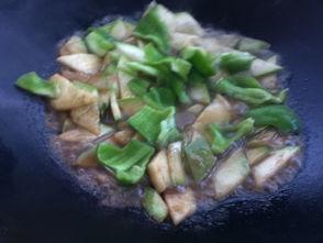 4. 将焯好水的角瓜条放入锅中,翻炒均匀,让角瓜条充分吸收酱汁的味道。